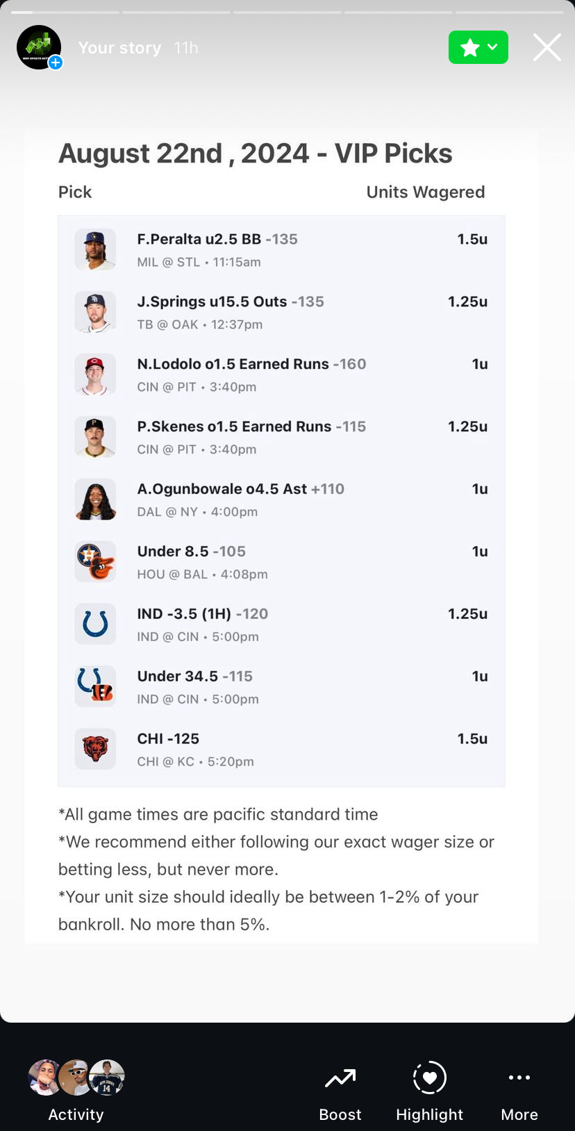 π©ππ£ ππΏπΌππ½ (ALL of my bets sent to you everyday of the week)
